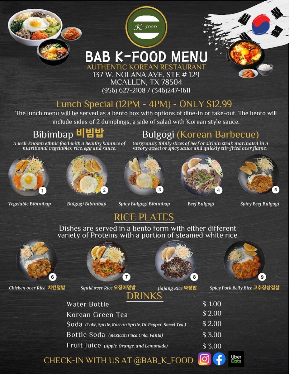 Welcome to BaB Korean Restaurant, a hidden gem nestled in McAllen, Texas, at 137 W Nolana Ave. A culinary haven for Korean cuisine enthusiasts, BaB offers a delightful array of traditional dishes that will transport your taste buds straight to Korea. With a commitment to authenticity and quality, this restaurant has quickly become a favorite among locals and visitors alike.
